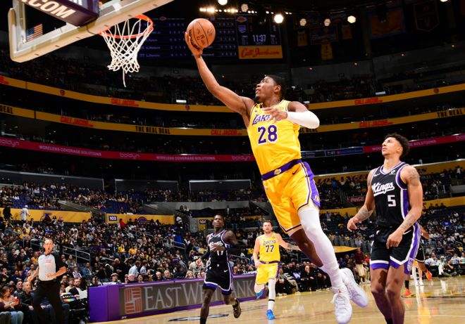 中场休息回来,琼斯上篮命中,文森特三分与艾顿中投扩大优势,施罗德连追4分。湖人内外开花一波10-1攻势扩大11分优势打停国王,国王连追6分,施罗德被斯马特踩掉鞋崴脚下场。湖人连得5分,国王连追5分,东契奇与埃利斯对攻一记三分,埃利斯追防斯马特受伤下场,双方接连罚球得分。斯马特中投得分,雷诺2+1命中,斯马特再得2分,三节结束湖人90-86领先国王。前三节比赛双方均是5人得分上双,拉文与埃利斯均是15分,东契奇24+5+8与八村垒16分。
